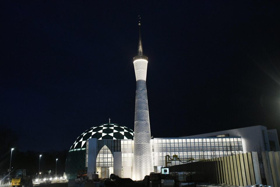 28.02.2022.,Sisak - Iako radovi na izgradnji sisacke dzamije jos uvijek traju nocu je dzamija osvijetljena i pruza lijepu sliku u sisackom prigradskom naselju Caprag.